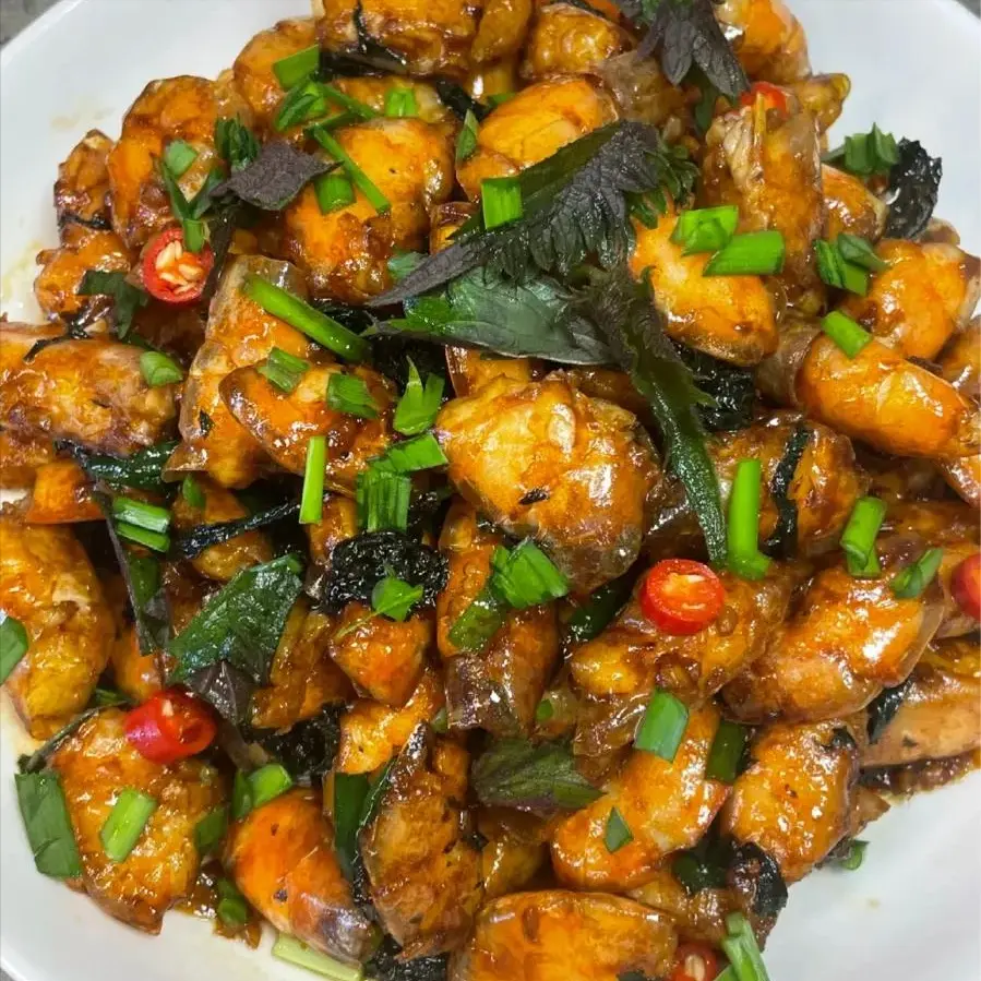 鲜虾Q弹鲜嫩,搭配紫苏的独特香气和韭菜的鲜香,咸香适口,风味十足。虾富含优质蛋白和矿物质,能增强免疫力,紫苏和韭菜能去腥提鲜,促进消化,做法简单快捷,家常必备。