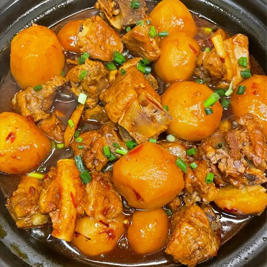 土豆软糯入味,排骨鲜香不柴,炖出来的汤汁浓郁,暖心又暖胃。排骨富含优质蛋白和钙质,土豆提供碳水化合物,营养均衡,既能补身体,又能增强免疫力,适合秋冬季节食用。