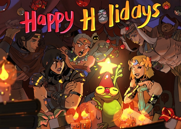 同样是今年的话题焦点,开发《哈迪斯2》的Supergiant Games也没有缺席。他们晒出了一张奥林匹斯众神共度佳节的热闹景象,不得不说,希腊神话与冬日氛围的混搭别有一番风味。