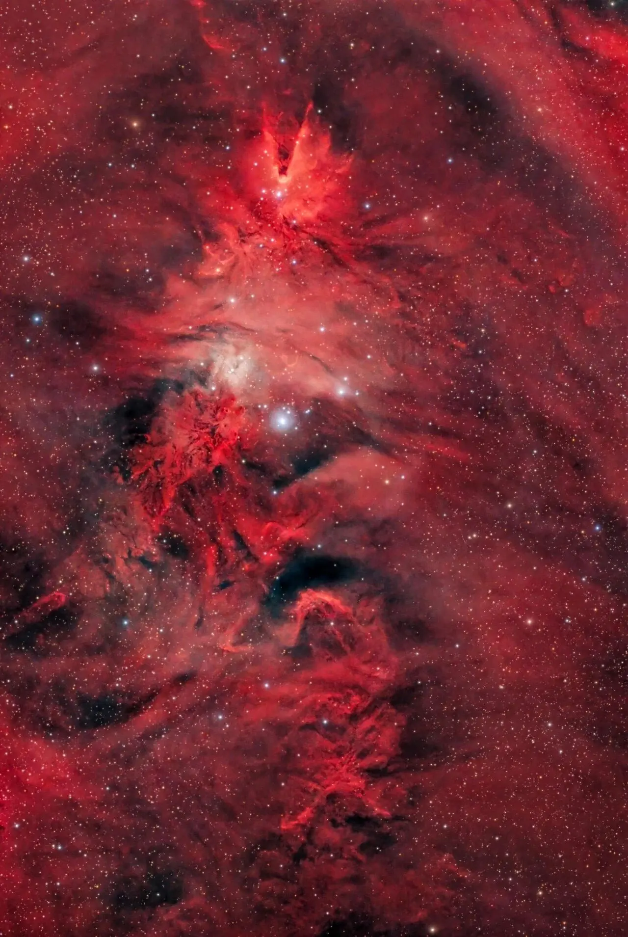 这个“圣诞树”有个正经编号:NGC2264。它是个活跃的恒星形成区,离地球不算太远(相对宇宙尺度),在麒麟座里——就是那个叫“独角兽座”的小星座,平时肉眼不太容易看到,但用望远镜能瞅见。