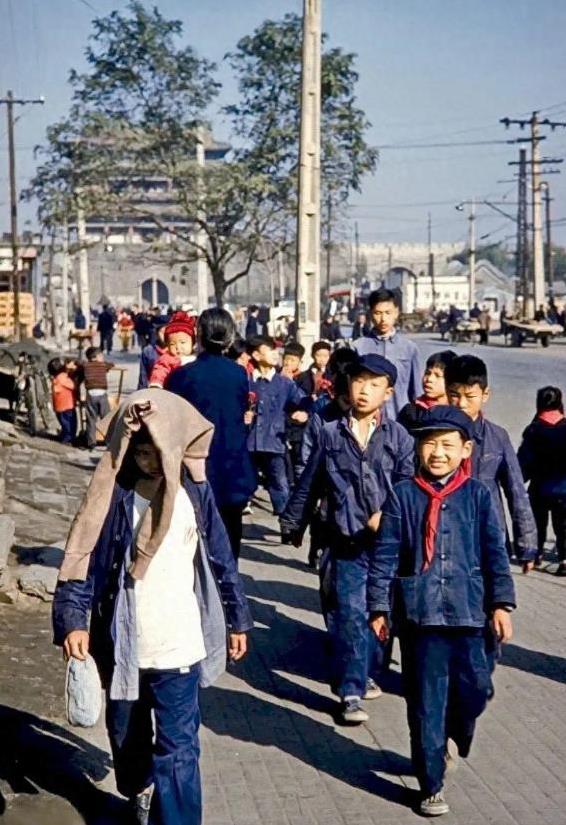 公园和休闲的地方,也留下了许多温馨的瞬间。北海公园或者后海,一对母子在湖边玩耍,孩子笑着追鸭子,母亲温柔地看着,那份天伦之乐,跨越年代都让人感动。白塔寺附近,人们穿着朴素的衣服,围坐着吃街头小吃,聊着家常。东单或者崇文门外大街,小学生们放学后成群结队,脸上满是天真。五十年代的北京,人口虽不如现在多,但城市建设在快速推进,从土地改革到第一个五年计划,国家财政经济逐步好转,北京的失业率也在下降,人们的生活虽艰苦,却充满了干劲。据统计,那时候北京的文盲率还在下降,扫盲运动让很多人第一次识字,孩子们上学成了常态。