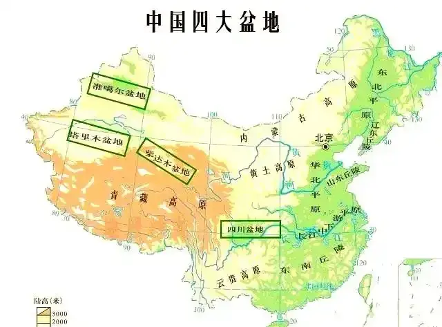 盆地是最富饶的地形,因为其中部低、四周高的地理构造,具备优越的沉积环境,能够源源不断的接受来自河流、海洋等环境的沉积物堆积。这些沉积物中富含大量有机物质和生物遗骸,例如藻类、浮游生物等,为石油天然气以及煤炭提供了深厚的形成基础和理想的储存空间,因此盆地地形也被誉为“聚宝盆”。中国有四大盆地,包括四川盆地、柴达木盆地、塔里木盆地和准噶尔盆地,其中前两个分别位于四川和青海,而后两个则全部位于新疆境内。
