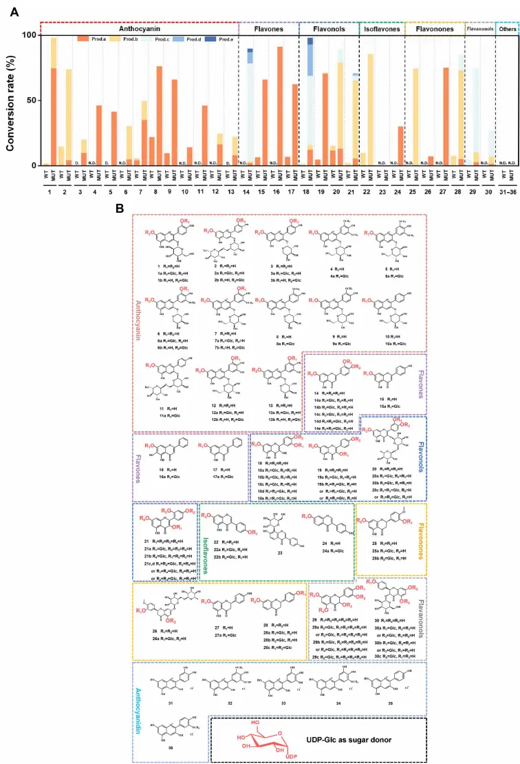 图4解析:B图堪称“黄酮家族全家福”,从蓝莓花青素到茶叶儿茶素应有尽有,突变酶几乎能通吃所有明星药材。