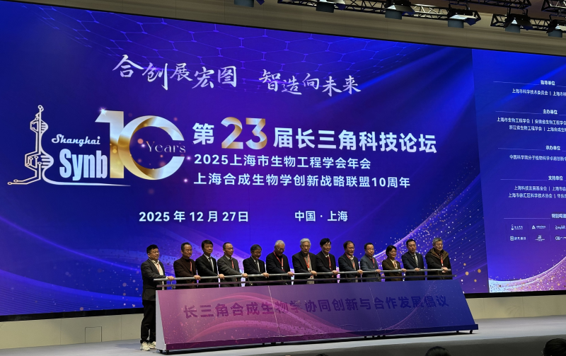 2025年12月27日,第二十三届长三角科技论坛——2025上海市生物工程学会年会、上海合成生物学创新战略联盟十周年活动在沪举行。大会聚焦合成生物学前沿进展、创新应用与产业落地、长三角科创区域协同合作,旨在推