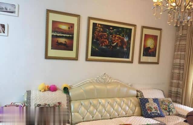客厅是欧式沙发,看起来很大气!就是沙发墙上的这三幅装饰画感觉很老气,也不知道真假当初是怎么想的......