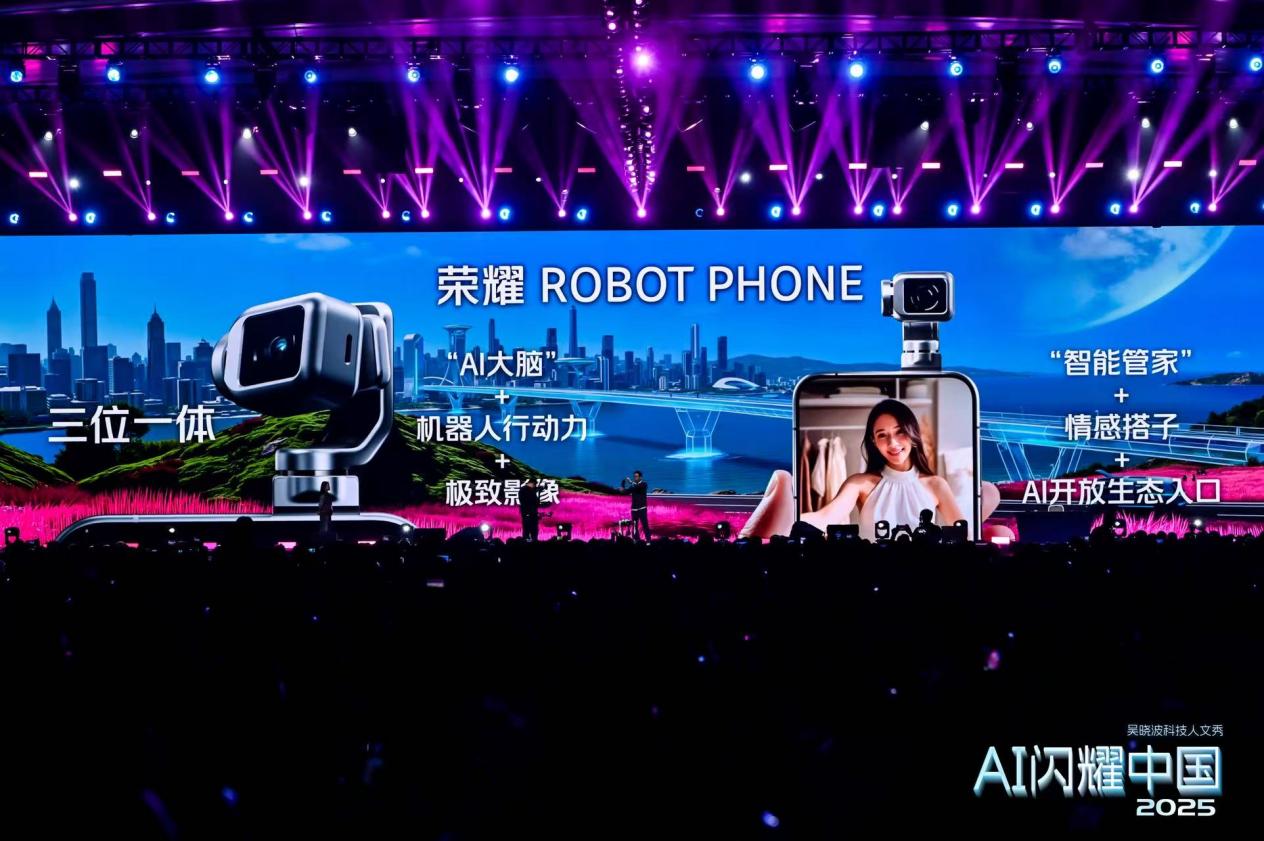 12月28日晚,在厦门举办的“AI闪耀中国”吴晓波科技人文秀上,一只机器狗稳步走向台前,背上载着一台造型独特的设备——荣耀ROBOT PHONE。吴晓波从机器狗身上取下这台被称为“全球第一款手机机器人”的产品,在这场AI赋能科技的盛会,场景颇具未来感,却也清晰地传递出一个信号:手机的形态边界,正在被重新绘制。