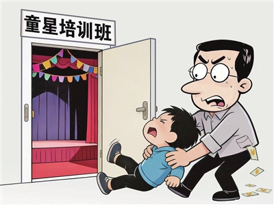 (潘雨阳绘)在直播间里,“普通孩子也能当演员”“签约即上戏”等令人心动的话术频繁出现,挑动着家长“望子成星”的期待;线下,动辄数万元的培训班被包装成通往童星光环的捷径,引诱着家长和孩子。