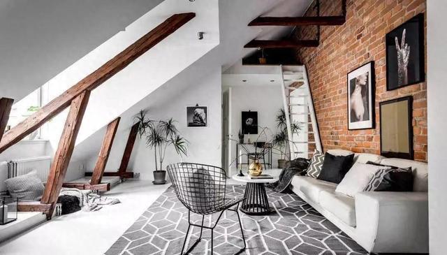 这座63㎡的阁楼公寓,设计师因地制宜将其改造成单身公寓。采用loft布局手法,保留了老建筑的特质,工业风与北欧风完美融合,形成独特反差美。