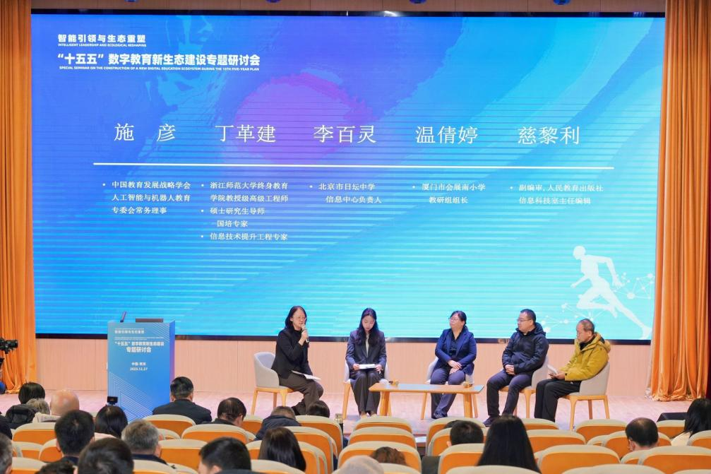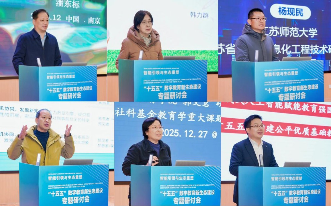 在国家“十四五”规划圆满收官、“十五五”规划谋篇布局的关键时期,为深入贯彻落实关于“推进人工智能全学段教育和全社会通识教育,源源不断地培养高素质人才”的重要指示精神,积极响应国家教育数字化战略行动部署,“‘十五五’数字教育新生态建设专题研讨会”12月27日在南京市雨花台区南站中小学召开。会议由中国教育发展战略学会教育政策与规划专业委员会与江苏省教育信息化与数据管理中心联合主办,以“智能引领与生态重塑”为主题,汇聚来自京、沪、渝,以及冀、晋、蒙、浙、皖、闽、赣、鲁、湘、粤、桂、琼、川、甘等17个省(区、市)教育行政部门负责人、高校专家学者及一线校长教师300多人参会。与会代表聚焦人工智能时代教育发展的根本性、前瞻性问题,重点围绕“未来人才核心素养如何界定”“教师角色与能力如何重塑”“技术应用如何兼顾公平与伦理”等议题展开深入研讨,共商发展路径,凝聚行动共识。
