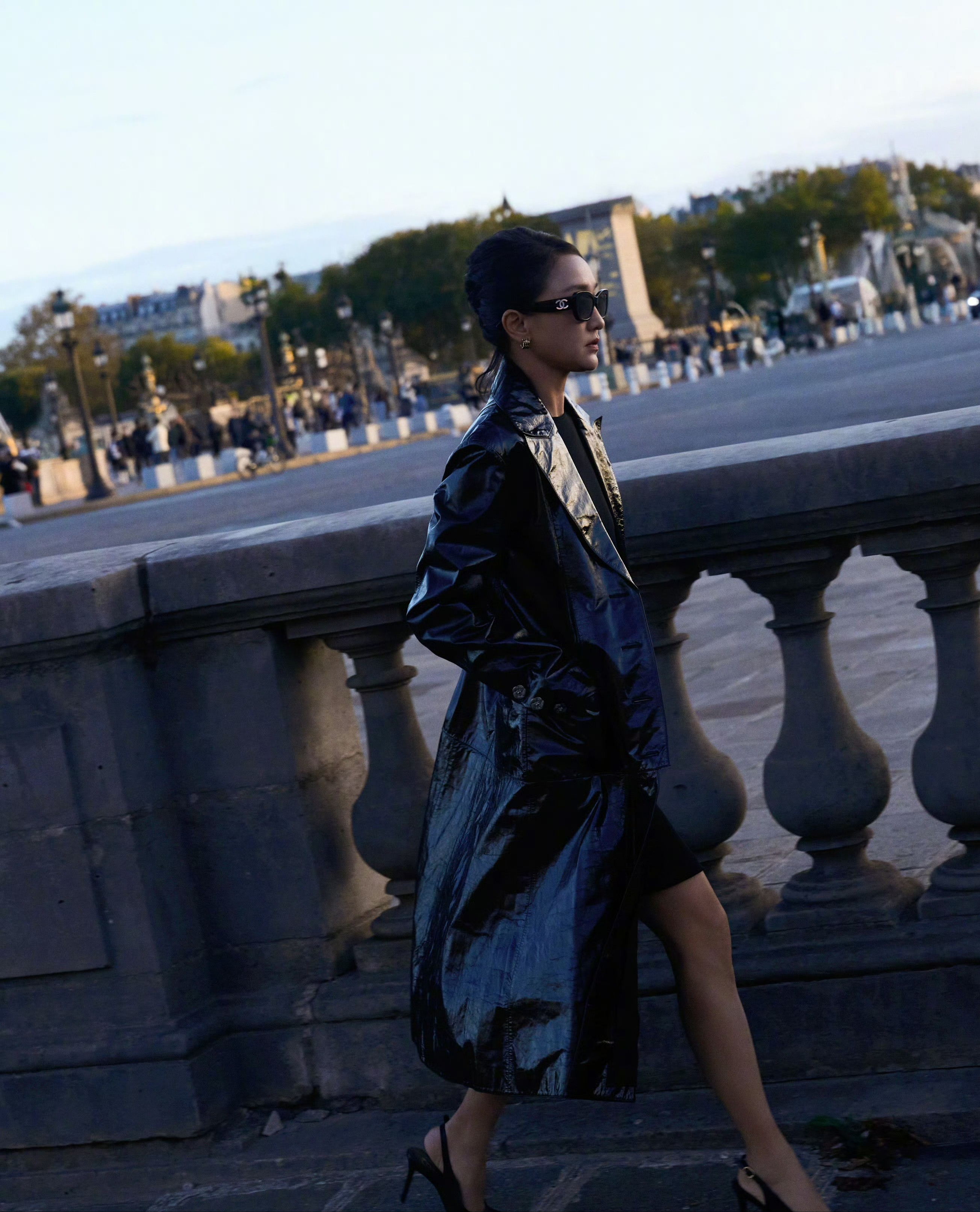 巴黎的晚风掠过塞纳河畔的石栏,周迅踩着细高跟走在街头,一袭黑裙将法式慵懒与东方灵秀揉成了独一份的风景。