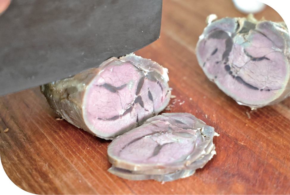 与袁师、爻里牛肉不同,绛县“金绛牛肉”走的是现代化深加工路线。金绛牛肉选用中条山脚下生长的黄牛牛肉,慢火熬煮,肉质绛红透亮、酥而不散、瘦而不柴,在淘宝等线上平台均有售卖。通过低温慢煮、真空包装等方式,金绛牛肉在保持传统风味的同时,延长了保质期,更方便携带,也让中条山牛肉这道晋南特色美食走向了更广阔的消费群体。