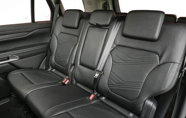 进入车内,新一代撼路者Tremor特别版车型采用了大面积黑色真皮材质铺陈,搭配着大量银色装饰条和亮黑色钢琴烤漆工艺的装饰面板,就连真皮座椅也填充厚实,每一处细节都经得起推敲。标准的T字形中控台配备了福特经典的三辐式多功能方向盘,两侧加入了大颗粒按键,还有两侧的多功能拨杆。操控岛区域换上了全新的符合人体工学设计的换挡手柄,右侧加入了两个标准的杯架,正前方保留了圆形的空调旋钮。科技感方面,该车配备了12.3英寸的全液晶仪表和12.8英寸的直立式中控大屏,搭载了SYNC+2.0智行信息娱乐系统,并支持全景影像。车内配备了黑色真皮沙发座椅,填充厚实,配备了B&O高级音响,也带来美式豪华SUV的慵懒、散漫的气息。