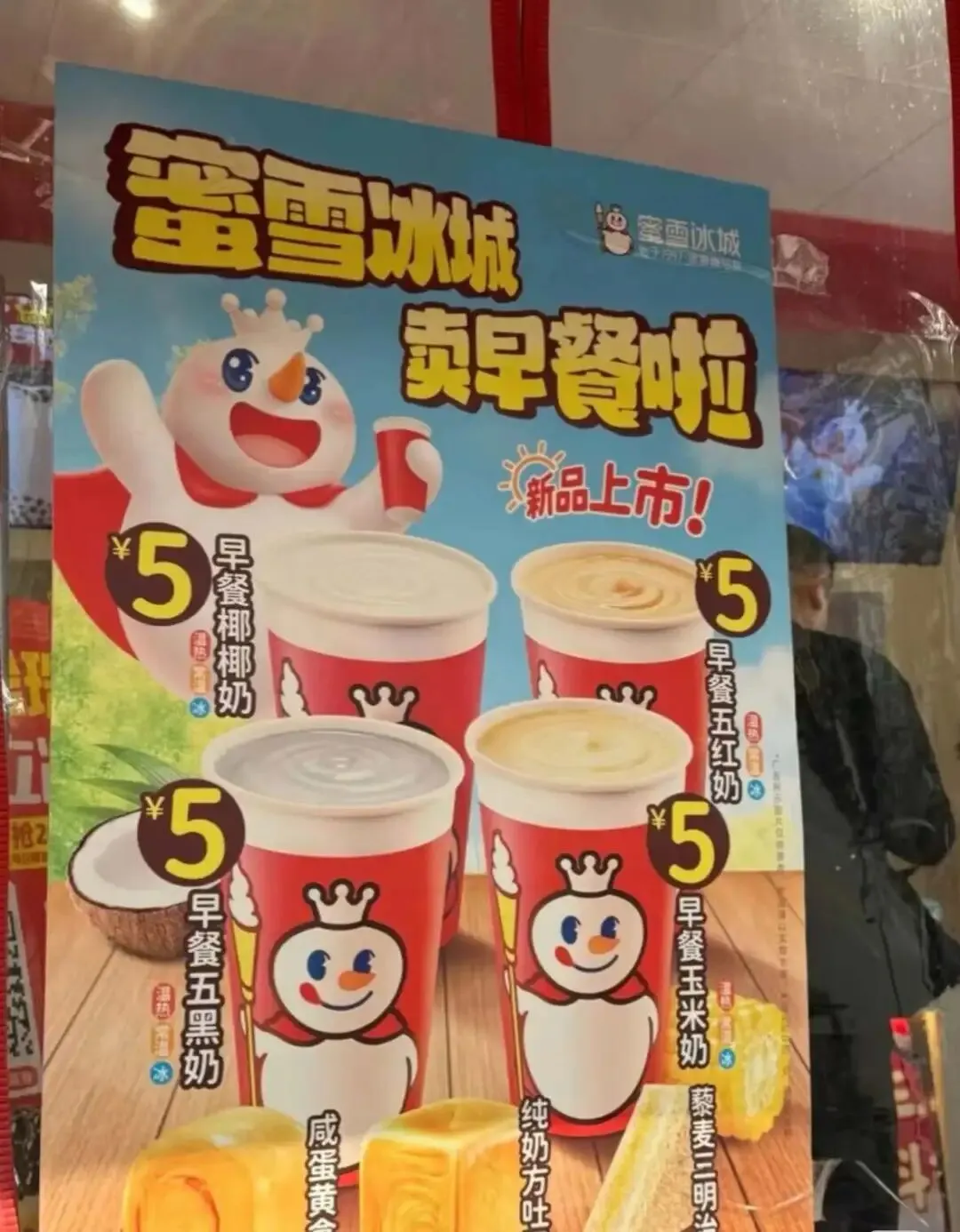 因此,在这种程度上可以推断,蜜雪冰城瞄准的对手,也许不是路边的早餐店,也大概率不会出现胡辣汤、水煎包、菜夹馍之类的产品。