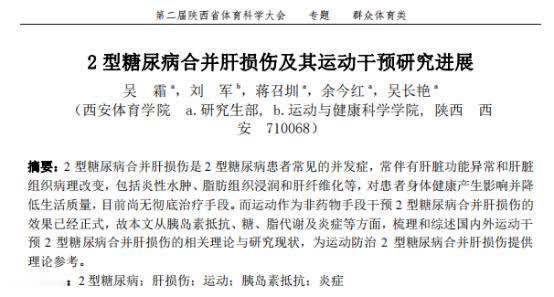 [1]吴霜,2型糖尿病合并肝损伤及其运动干预研究进展,第二届陕西省体育科学大会论文摘要集(专题九),2024-06-18