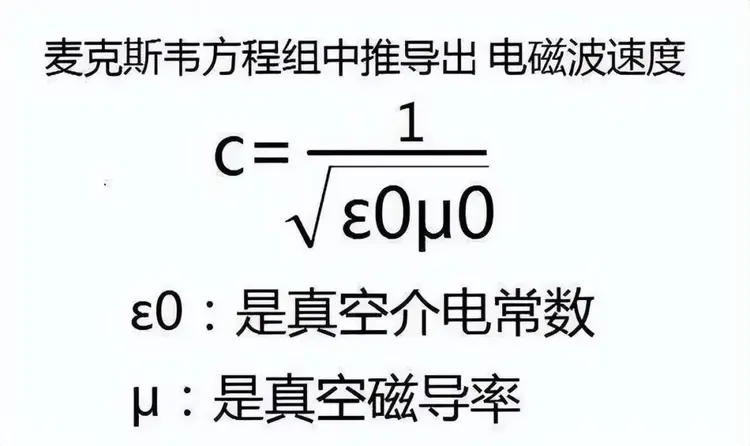 但麦克斯韦方程组的出现,打破了这种认知。麦克斯韦方程组是 19 世纪物理学的巅峰之作,它将电场和磁场统一起来,预言了电磁波的存在,并推导出了电磁波的传播速度公式:c=1/√(μ₀ε₀),其中 μ₀是真空磁导率,ε₀是真空介电常数。这个公式的神奇之处在于,它里面没有任何参照系 —— 也就是说,电磁波的速度(即光速)是一个与参照系无关的常数,只由真空的固有性质决定。