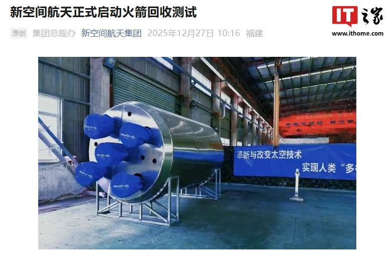 IT之家 12 月 29 日消息,我国民营火箭公司“新空间航天”在 12 月 27 日宣布,正式启动赤兔 1 号运载火箭回收与重复使用关键技术工程测试(赤兔 1 号运载火箭发动机舱直径 2.25 米,高 4.5 米),意味着新空间航天在“低成本、高可靠、可重复使用”航天技术路线上的核心能力正在加速落地。