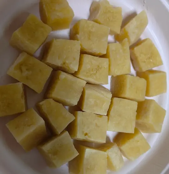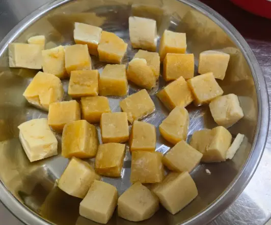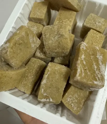 如果说前三个是零食或配菜,那冻粘豆包就是东北冬天的“主食之王”。一个个金黄色的圆锥体,冷冻在一起,硬邦邦的。南方人以为是某种工艺品,或者是糯米团子放坏了变硬了,纷纷摇头表示无法理解。