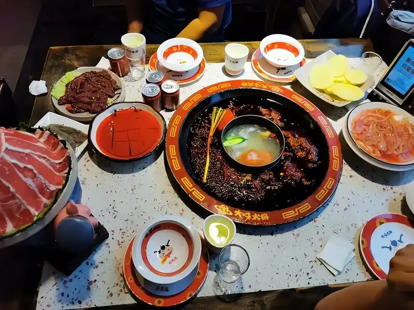 59块9一位,近百道菜品从毛肚到甜品敞开吃,师傅们就在你眼皮子底下现切现煮,那锅咕嘟冒泡的红油看着就香。