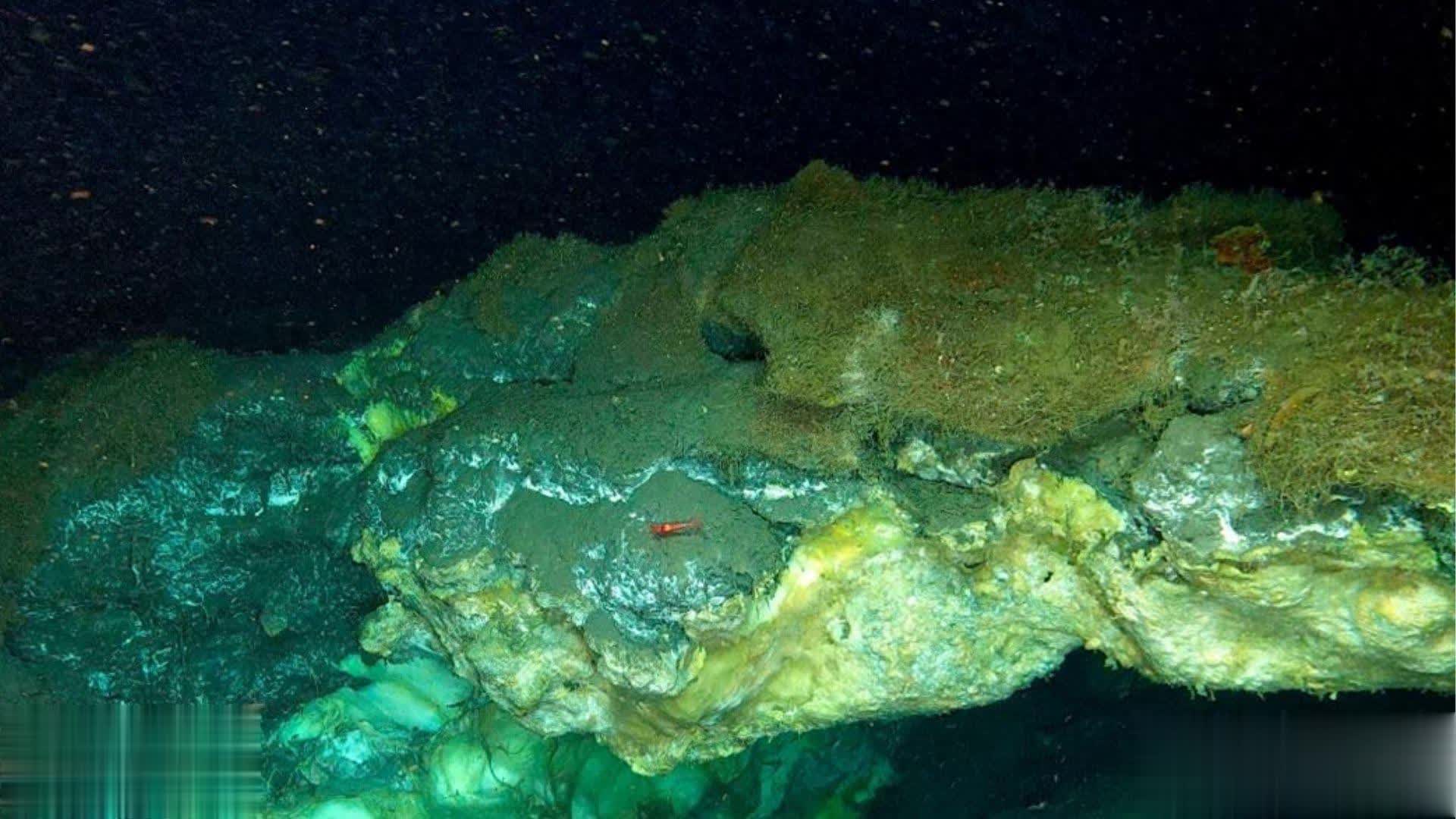 海底源头处呈现混乱的"活态"地质景观:甲烷冰(气体水合物)在持续循环中形成与坍塌,原油从沉积物中渗出。在这片"有毒浓汤"中,生命却找到了繁盛之道。在漆黑深渊中,光合作用无法进行,整个生态系统依靠化能合成运转。弗蕾娅水合物丘孕育着特化的管蠕虫、缩头虫和蜗牛,它们无需阳光或常规食物来源,依靠共生细菌将有毒化学物质转化为维持生命的能量。