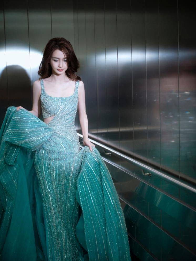Angelababy在澳门出现,没有提前告诉别人,也没有开直播,只是发了一张照片,她穿的裙子是Tony Ward的2025春夏高定系列,薄荷绿的底子配上碎钻,拖尾有三米长,就像凝固的蝴蝶尾巴,这张照片一发出来,阅读量马上到了四千八百万,有人觉得这裙子价格太高,但更多人认为她本人的样子也经得起看,没修图反而让人更相信她。
