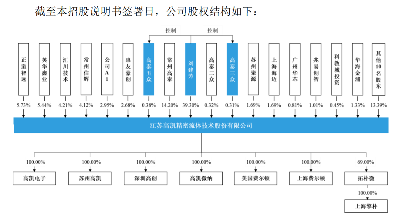 招股书显示,高凯技术成立于2013年,是国内精密流体控制领域的领军企业,专业从事精密流体控制领域中关键控制部件及相关设备的研发、生产与销售。