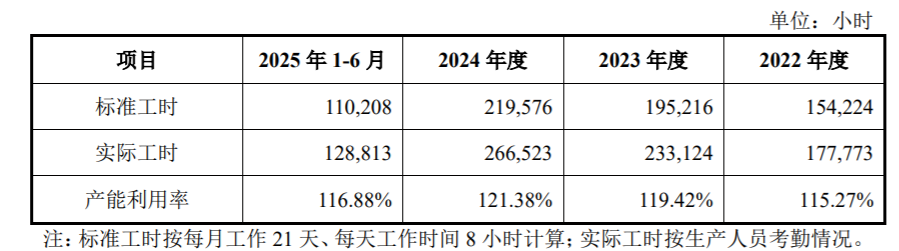 报告期内,公司总体产品的产能利用率分别为115.27%、119.42%、121.38%、116.88%,整体处于较高水平。