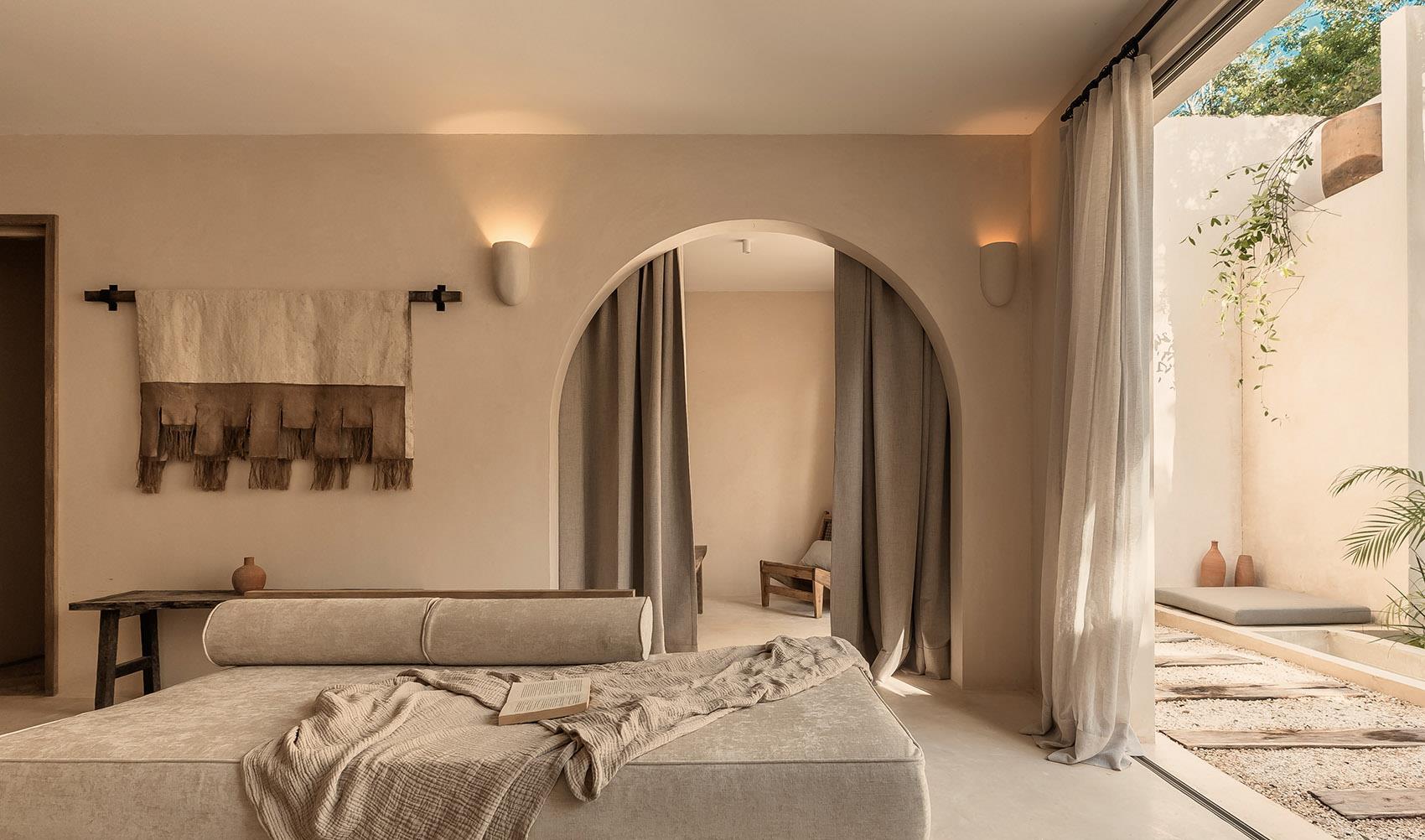 客房设计中通过本地材料、被动式设计策略以及与植被的直接互动,让室内与环境融为一体。墙面的天然涂层,既提升了室内的明亮度,又降低了项目的碳足迹。优先关注日常生活体验与对景观的尊重。