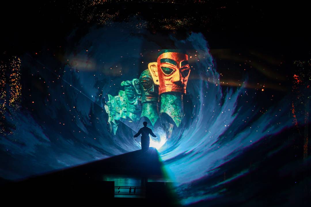 “何以德阳”篇章中,跨时空音画《三星伴月》以三星堆文化为背景,与AI虚拟人展开跨时空对话;节目《山河诗心》则将诗歌与川剧表演创新融合,赋予经典以当代回响。此外,非遗羌舞《九顶山歌》与舞蹈《走祥云》精彩上演,《蜀道》《何以德阳》等歌曲联唱,共同阐释了德阳深厚的文化底蕴。