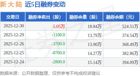 新大陆:12月30日融券卖出5.59万股,融资融券余额8.96亿元