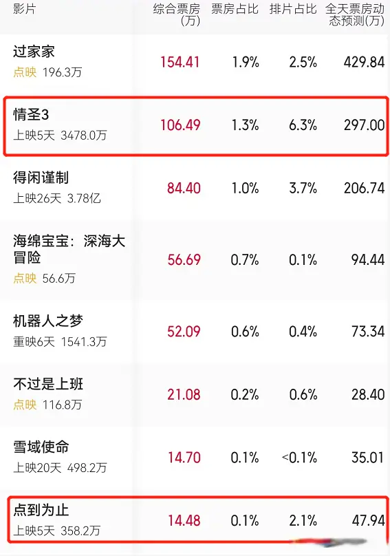 而《点到为止》用沈腾为宣传头衔,如今排片更是直接掉到了2.1%,票房能有几十万就不错了。