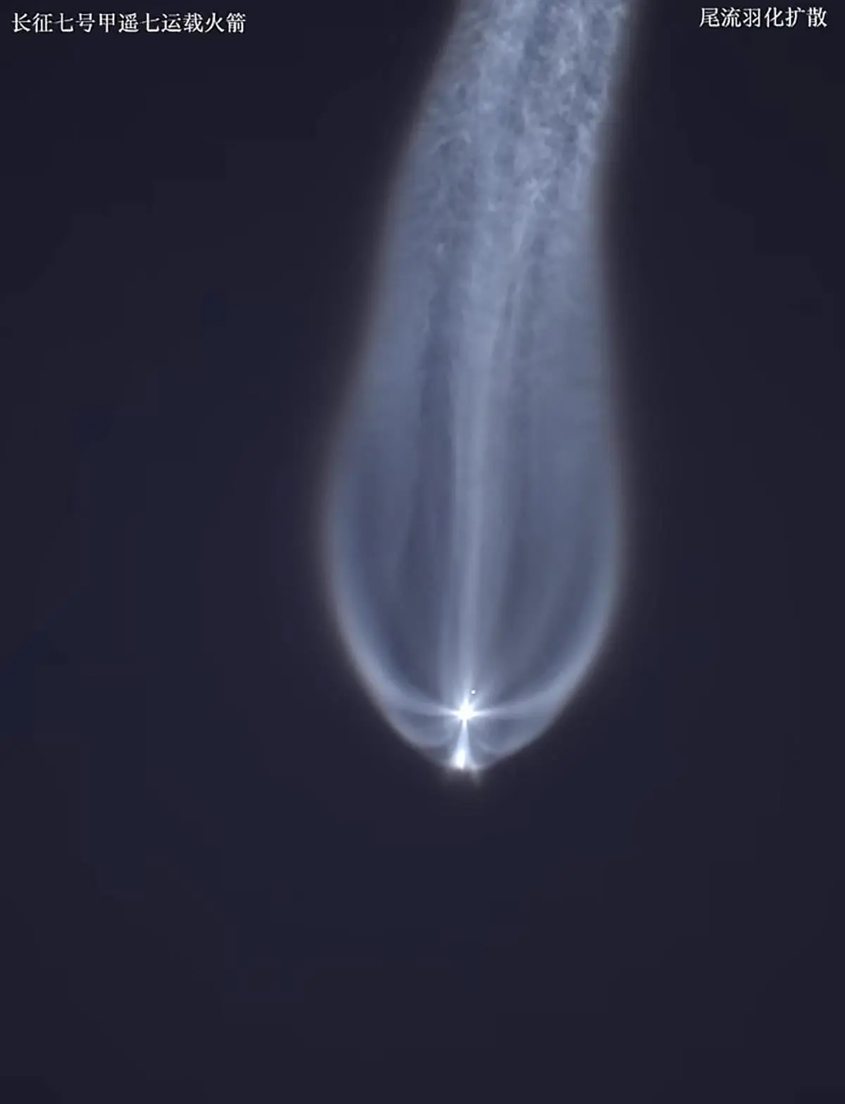 摄影师拍下长征七号罕见“太空水母”画面:像大海中疾驰的快舟,一年都难得遇到一次