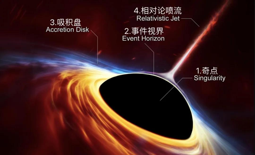 当核心坍缩后质量超过"奥本海默-沃尔科夫极限"(约2到3倍太阳质量),没有任何已知力量能对抗引力。物质会一直坍缩,直到被压成一个体积为零、密度无穷大的"奇点"。奇点周围存在一个边界叫"事件视界",逃逸速度在这里超过光速,任何东西越过这条线就永远出不来了。这就是黑洞。