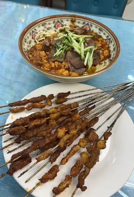 一手是热腾咸香、扎实饱腹的驴肉黄面,一手是冰凉酸甜、沁人心脾的杏皮水。一热一冷,一浓一淡,一扎实一清爽,仿佛沙漠与绿洲的相依,阳关古道的苍茫与月牙泉的清冽共存的敦煌。在这夏夜的烟火气里,古老的丝路风情,化作了舌尖上最酣畅淋漓的对话。