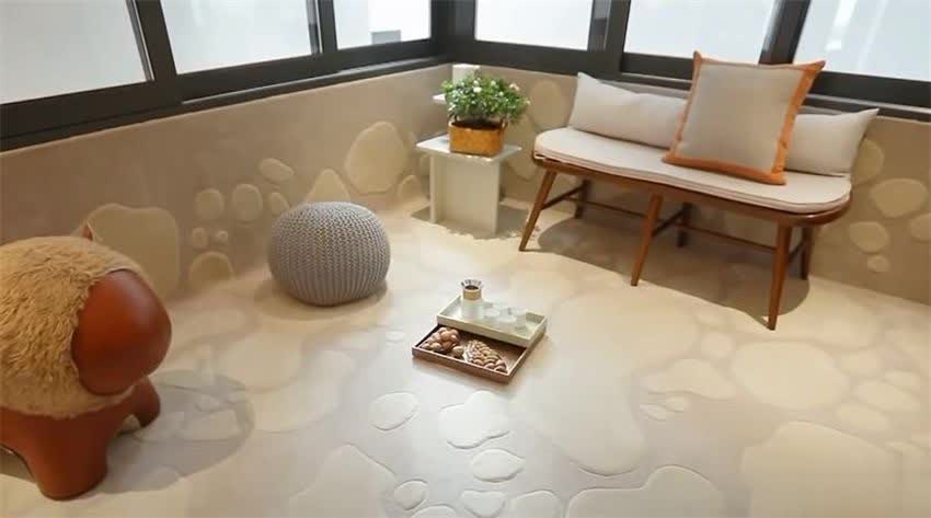 收起卧室后,地板底下还有升降榻榻米,平时可作为茶室。一个空间二种功能,这个设计太巧妙。