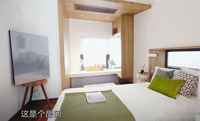 室内的柜体翻下是一张双人床,平日有客人来,这里完全可以当做临时起居室,隐私性很好。