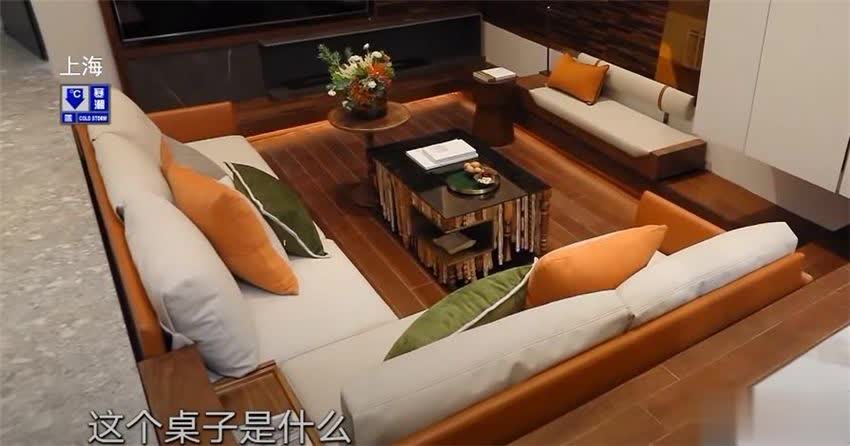 往里走的客厅同样做了下沉,合围式沙发卡座,搭配复古茶几,对面是电视,一家人坐在这里,一点也不觉得拥挤。