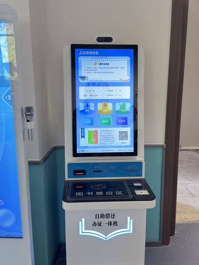 记者在该书店入口处看到,左侧放置一台自助借还办证一体机,右侧立有“自助借还机操作攻略”木架,借还流程与图书馆一致。