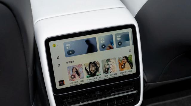 细节上可以感受到后排质感是有所升级,特别是后排老板坐的位置已经有了折叠的小桌板,而且空调出风口位置提供了面积还不错的触控大屏。