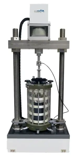 动三轴系统ELDYN是GDS设备中最经济的动态测试系统,它基于一个高刚度的轴向加载架和横梁上安装的电机作动器。