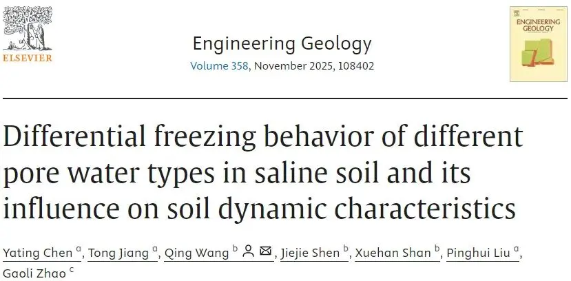 吉林大学课题组近日在岩土工程学术期刊《Engineering Geology》发表了题为“Differential freezing behavior of different pore water types in saline soil and its influence on soil dynamic characteristics”(盐渍土中不同类型...