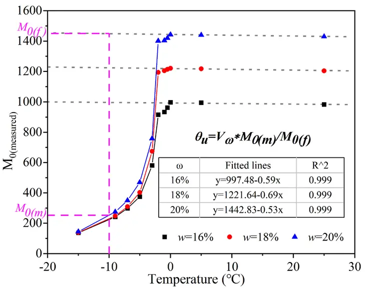 Fig. 6. The cooling curve of soil samples with water contents (w) ranging from 16 % to 20 %.