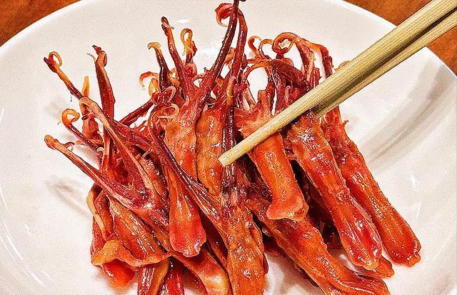 温州鸭舌是当地一道非常流行的凉菜、小吃,历史悠久,清朝时还曾作为御膳。温州鸭舌选用新鲜的鸭舌为主料,先用葱姜、料酒腌制去腥,再冷水下锅煮出血沫,打干净后煮熟盛出,最后回锅加生抽、老抽、辣椒段、胡椒粉等调味,倒入适量热水,焖至软烂,大火收汁即可,做好的鸭舌色泽红润,香脆可口,下酒又下饭!