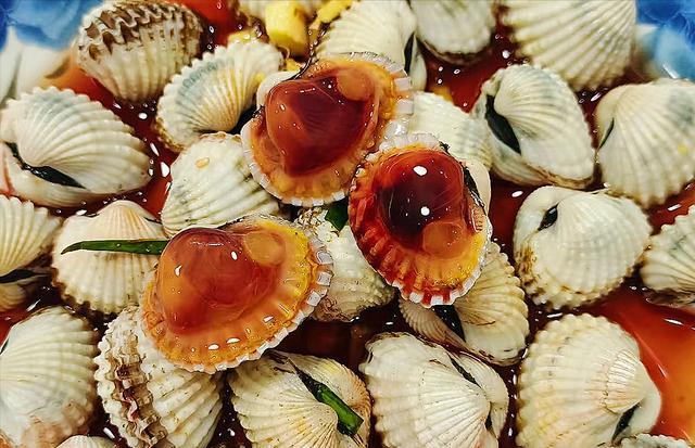 花蚶,又叫泥蚶、芽蚶、血蚶,生活在浅滩的海底泥土中,富含维生素C、碘等营养成分,非常滋补,当地人坐月子时有吃花蚶的传统,味道还很鲜美,深受温州人欢迎。花蚶做法简单,但很要求技术,因为花蚶易熟,过火了口感就大打折扣,可以放入沸水中焯烫十几秒,也可以用先过一次开水,再下锅烫七八秒即可,肉质自带咸味,非常肥美。