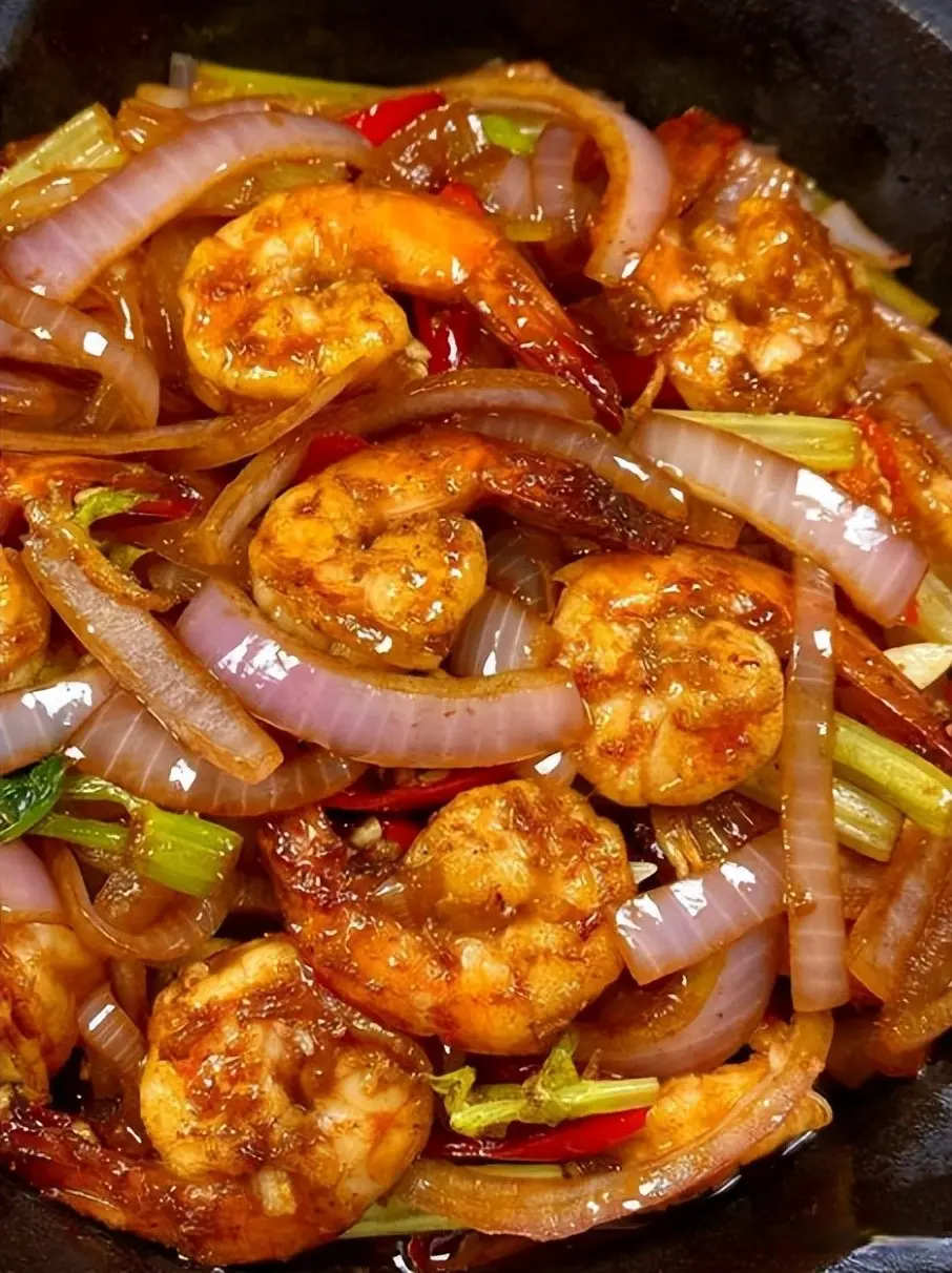 三、洋葱炒大虾做法