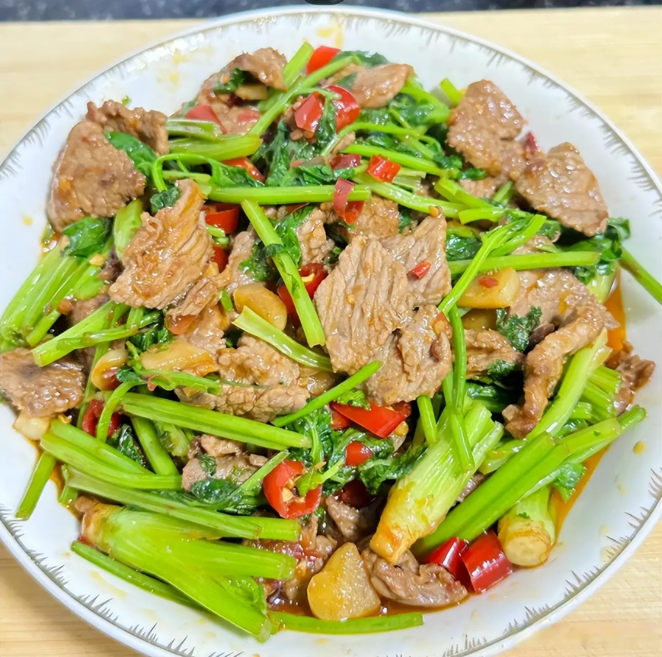 (3) 炒牛肉时要大火快炒,避免牛肉炒老。