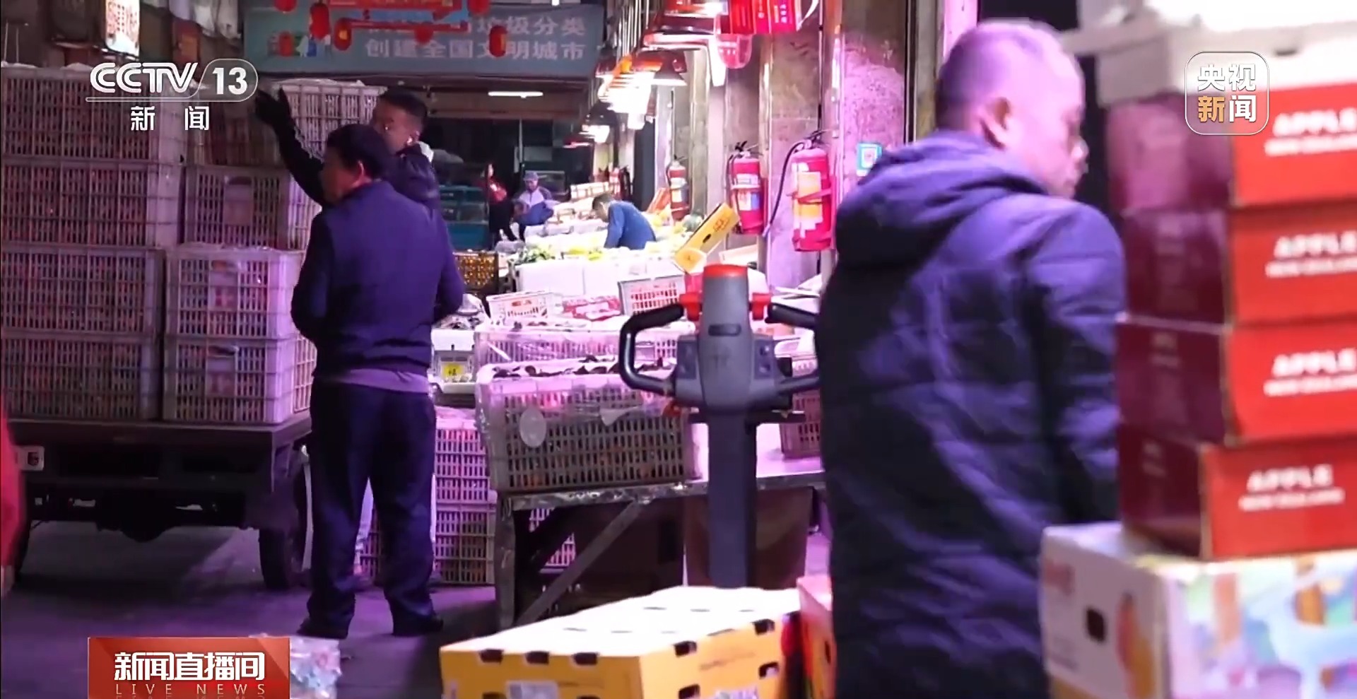 总台央视记者 高媛:凌晨4点,很多人还在家里睡觉,但是在深圳的“菜篮子”海吉星市场,一天中最忙碌的时段之一就已经开始了。很多人新年的第一口鲜就将从这里出发。