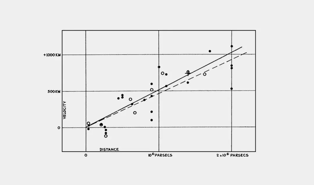 勒梅特不仅提出膨胀宇宙模型,还给出了星系退行速度和距离的数学关系。