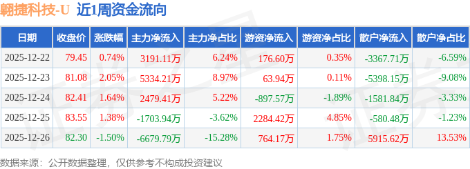 本周盘点(12.22-12.26):翱捷科技周涨4.35%,主力资金合计净流入2621.00万元