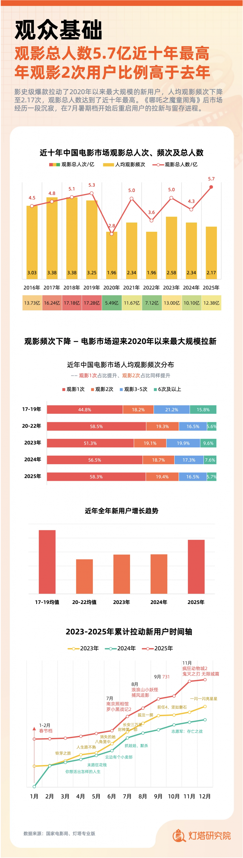 灯塔研究院发布2025中国电影市场年度盘点报告 观影总人数5.7亿创近十年新高