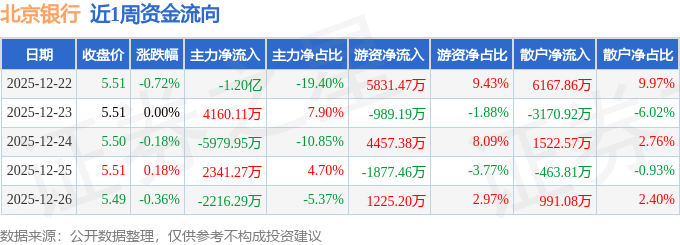 沪深股通持股方面,截止2025年12月26日收盘,北京银行沪股通持股数为10.29亿股,占流通股比为487.0%。